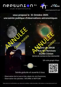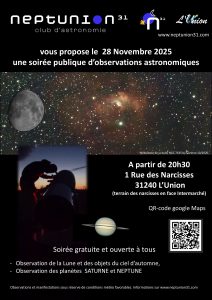 Neptunion31 vous propose une soirée d’observation publique le 3 octobre 2025 à partir de 21h.Ce sera l’occasion de découvrir ou…